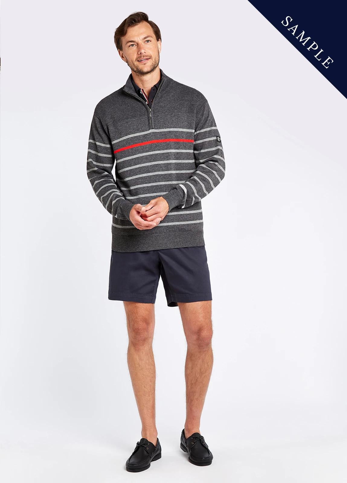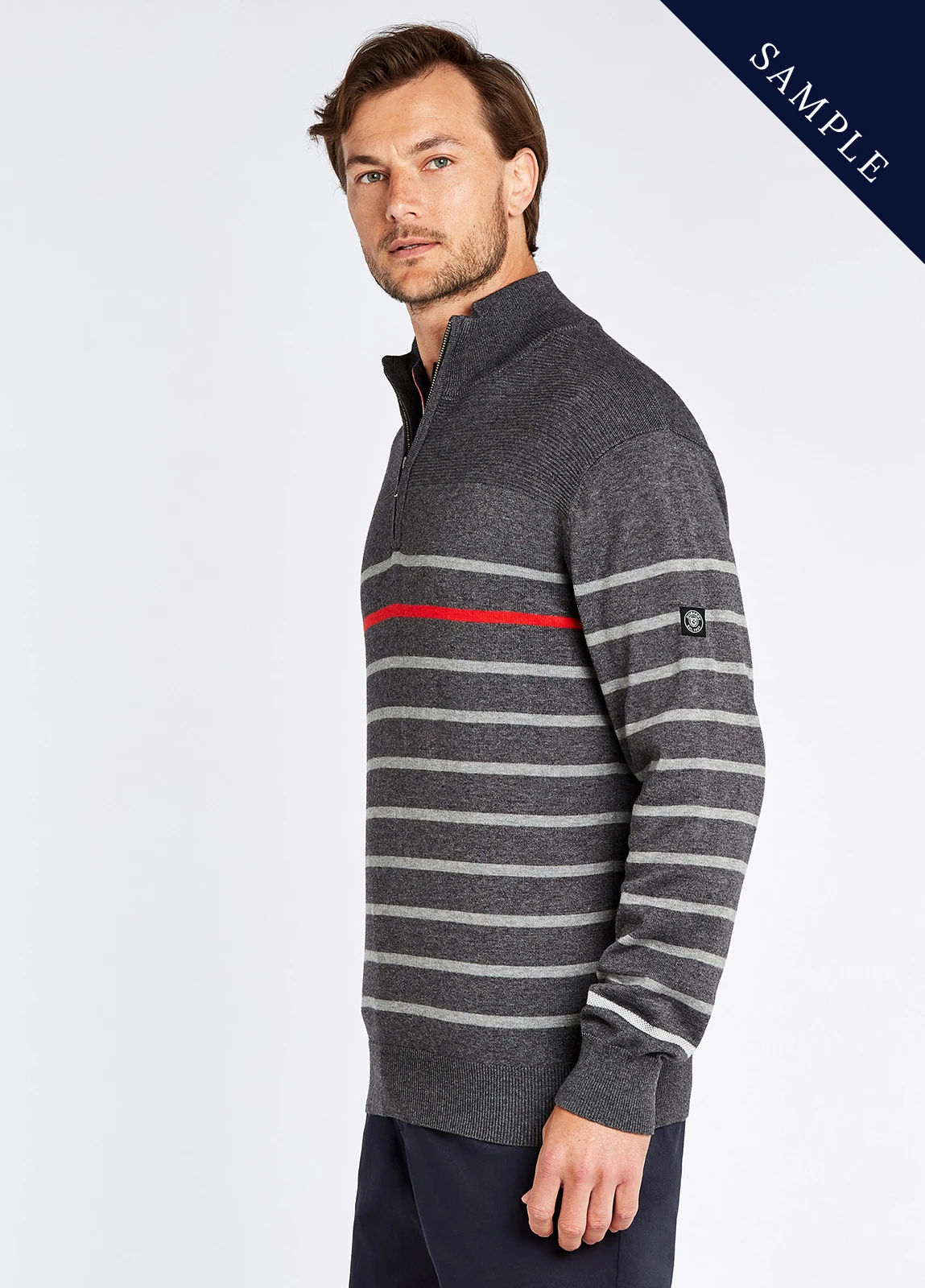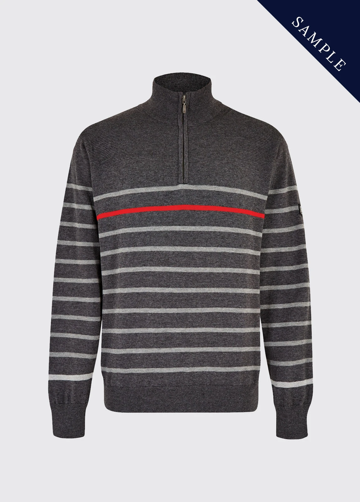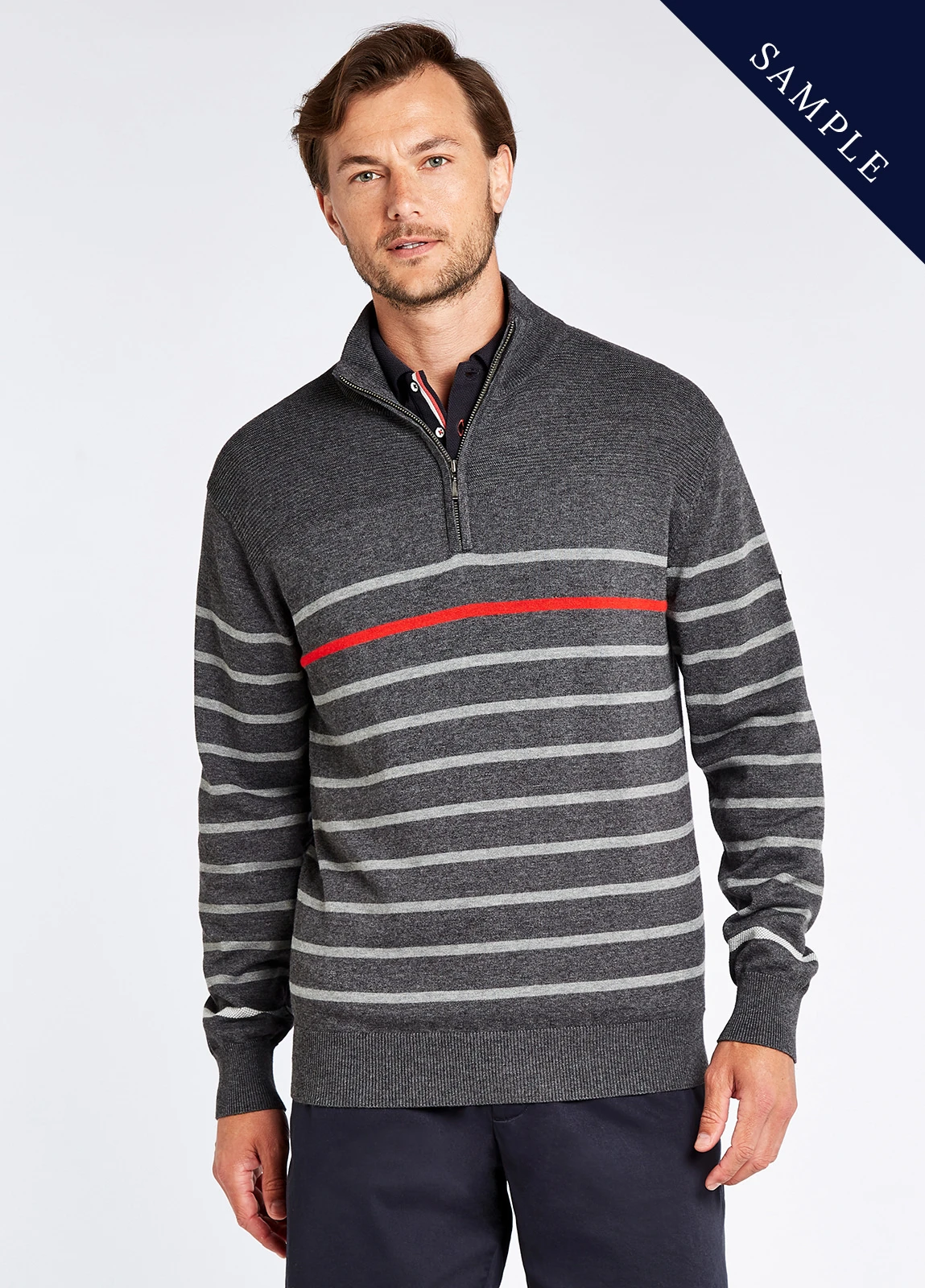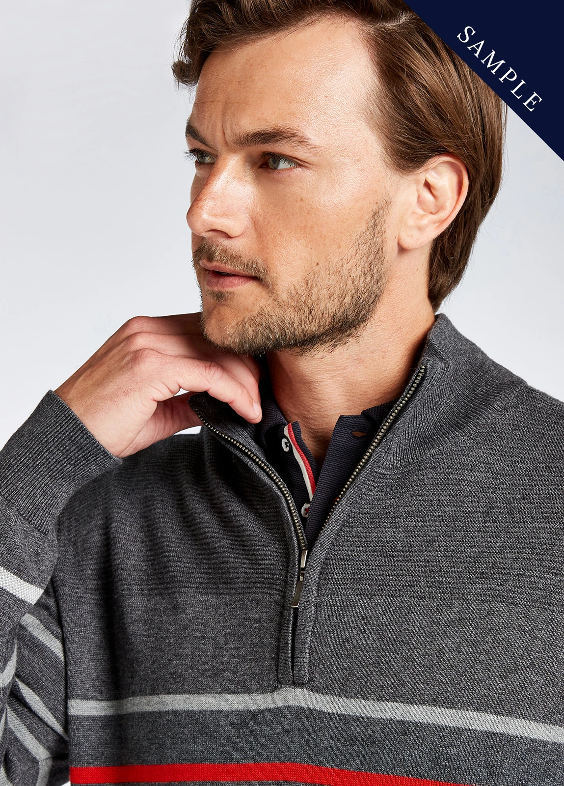 Men’s lightweight striped zip neck knit with Coolmax®.