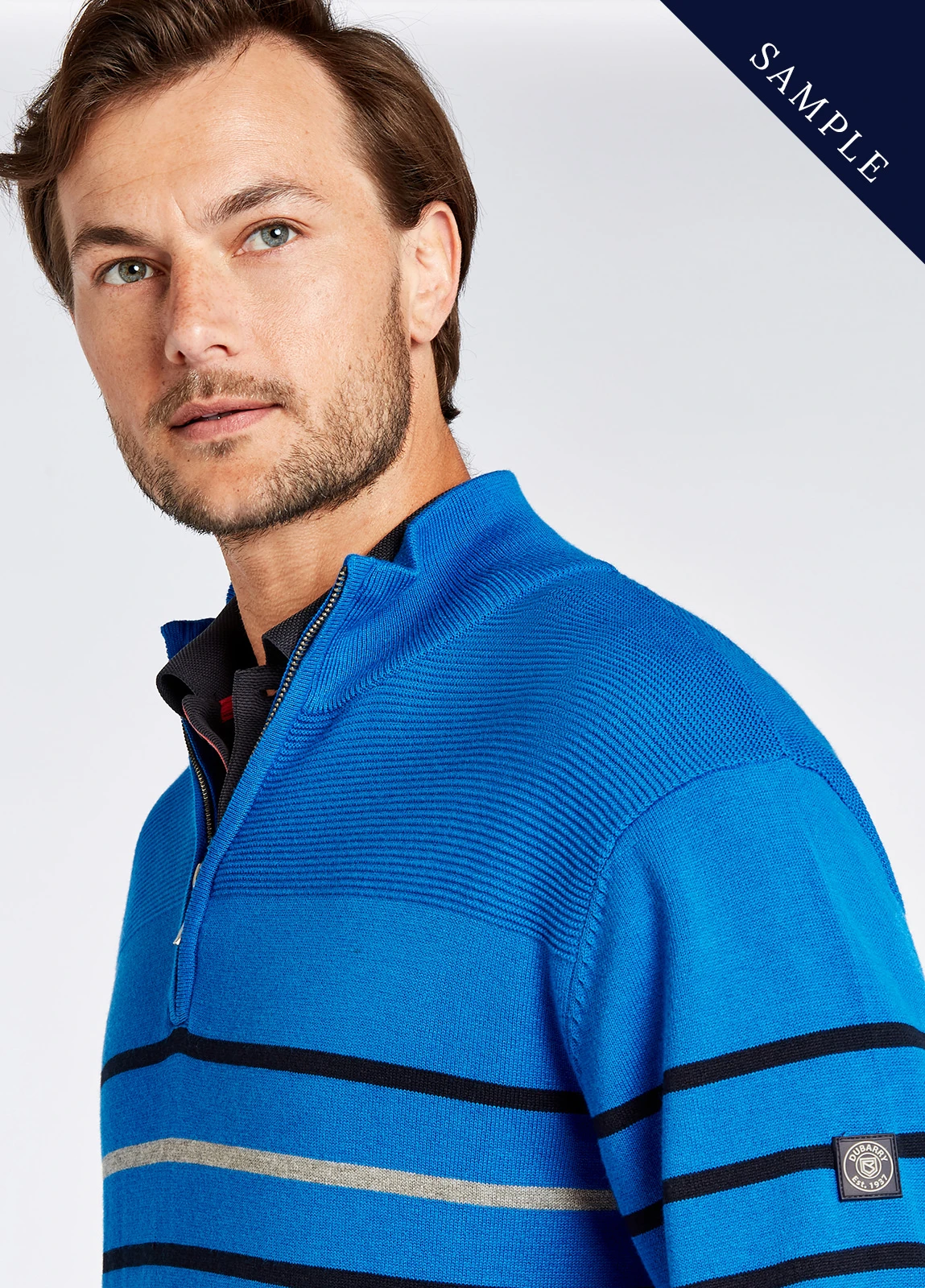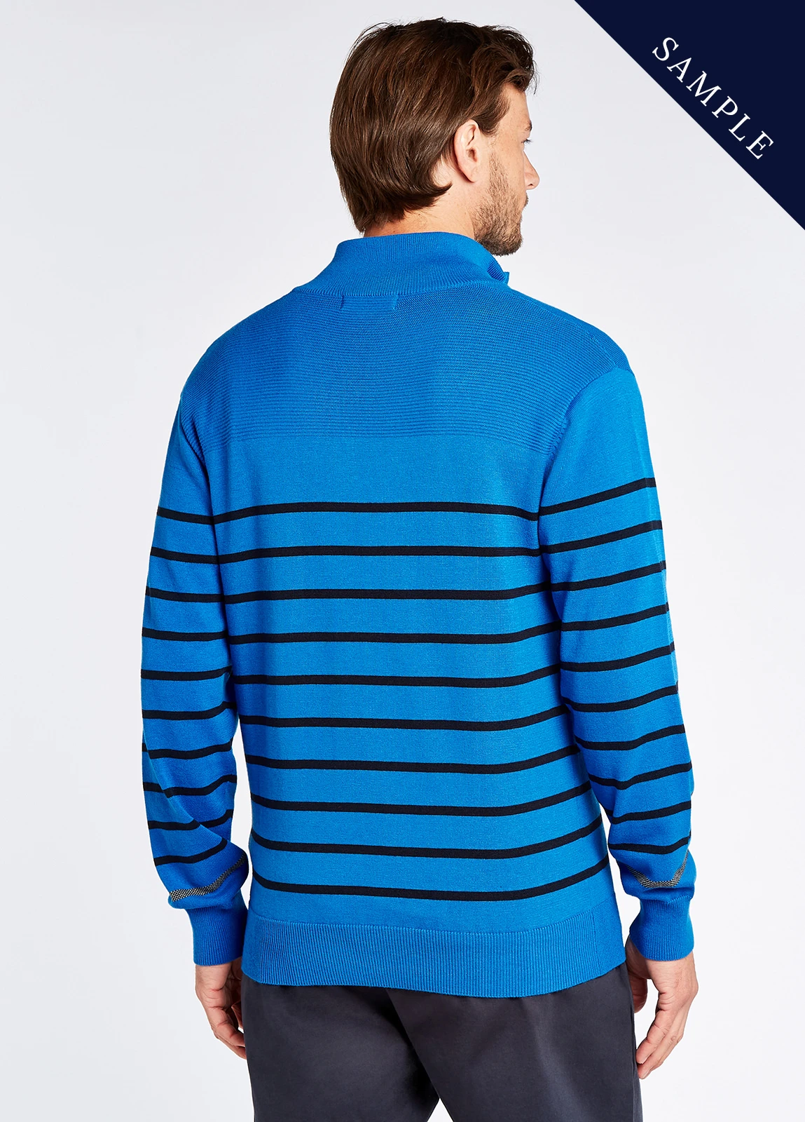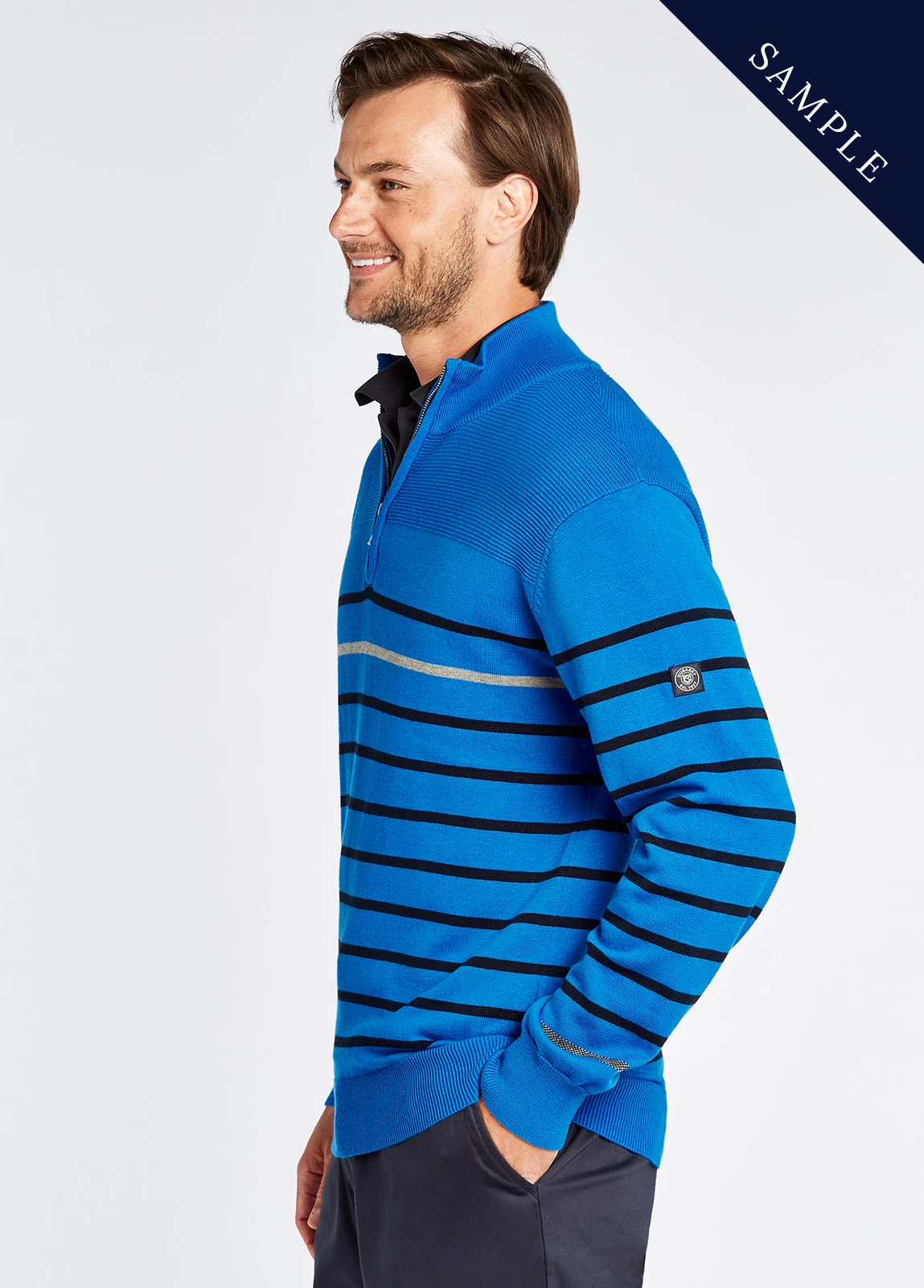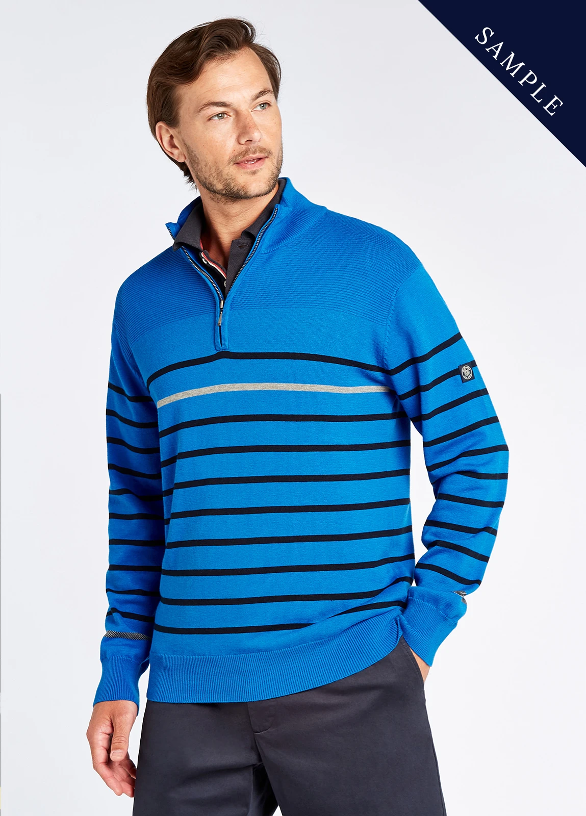 Men’s lightweight striped zip neck knit with Coolmax®.