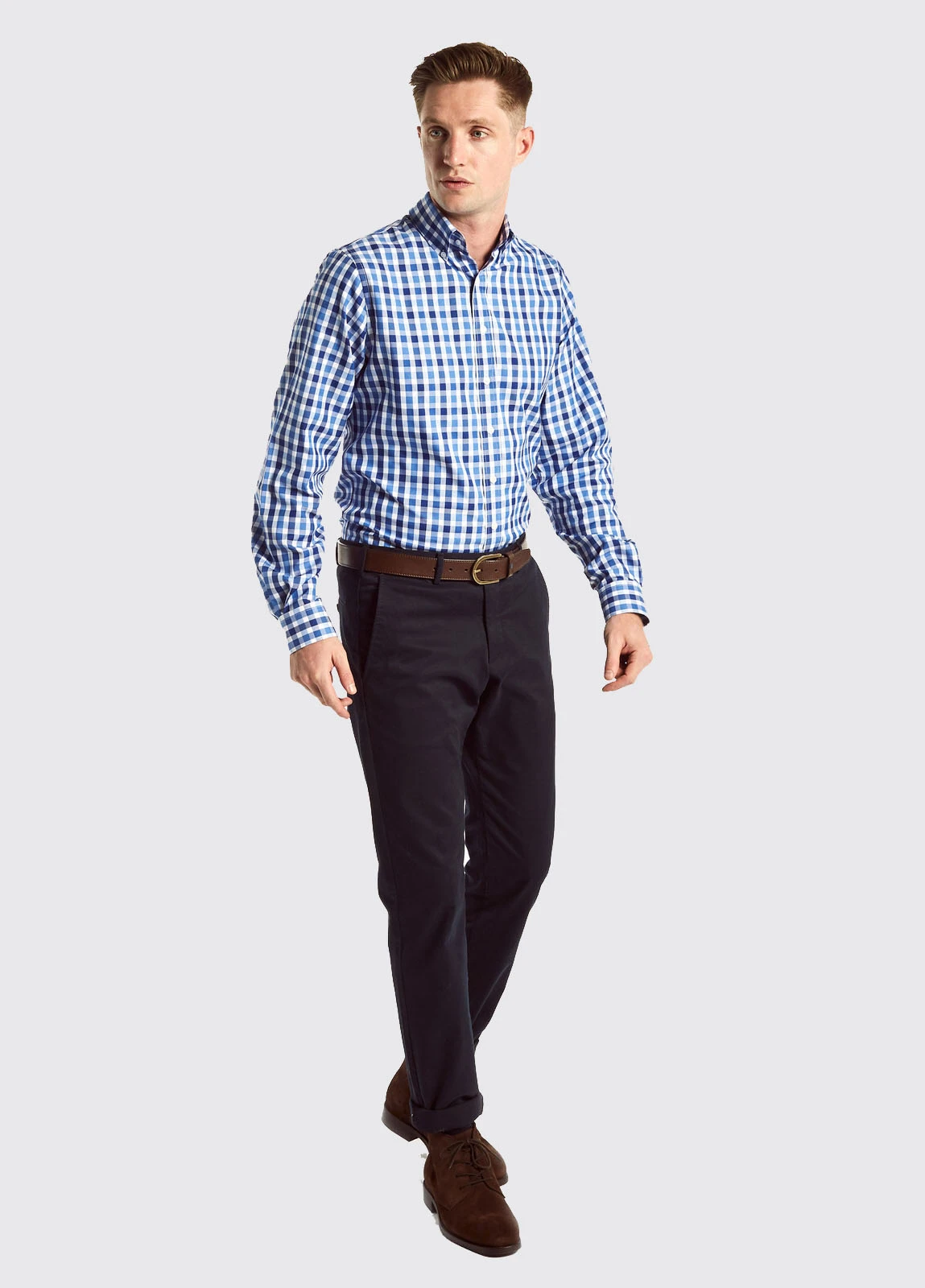 A shirt that bridges work and play, the Scottstown comes in a variety of bold custom designed Dubarry checks, has a button down collar and is made with moisture wicking Coolmax fabric, for an eye-catching look yet practical feel. Great for brightening the office, a casual kitchen supper, or drink with friends, the cotton and Coolmax blend makes it breathable, soft on skin, and an ideal shirt for layering. – Coolmax shirt in custom designed check.