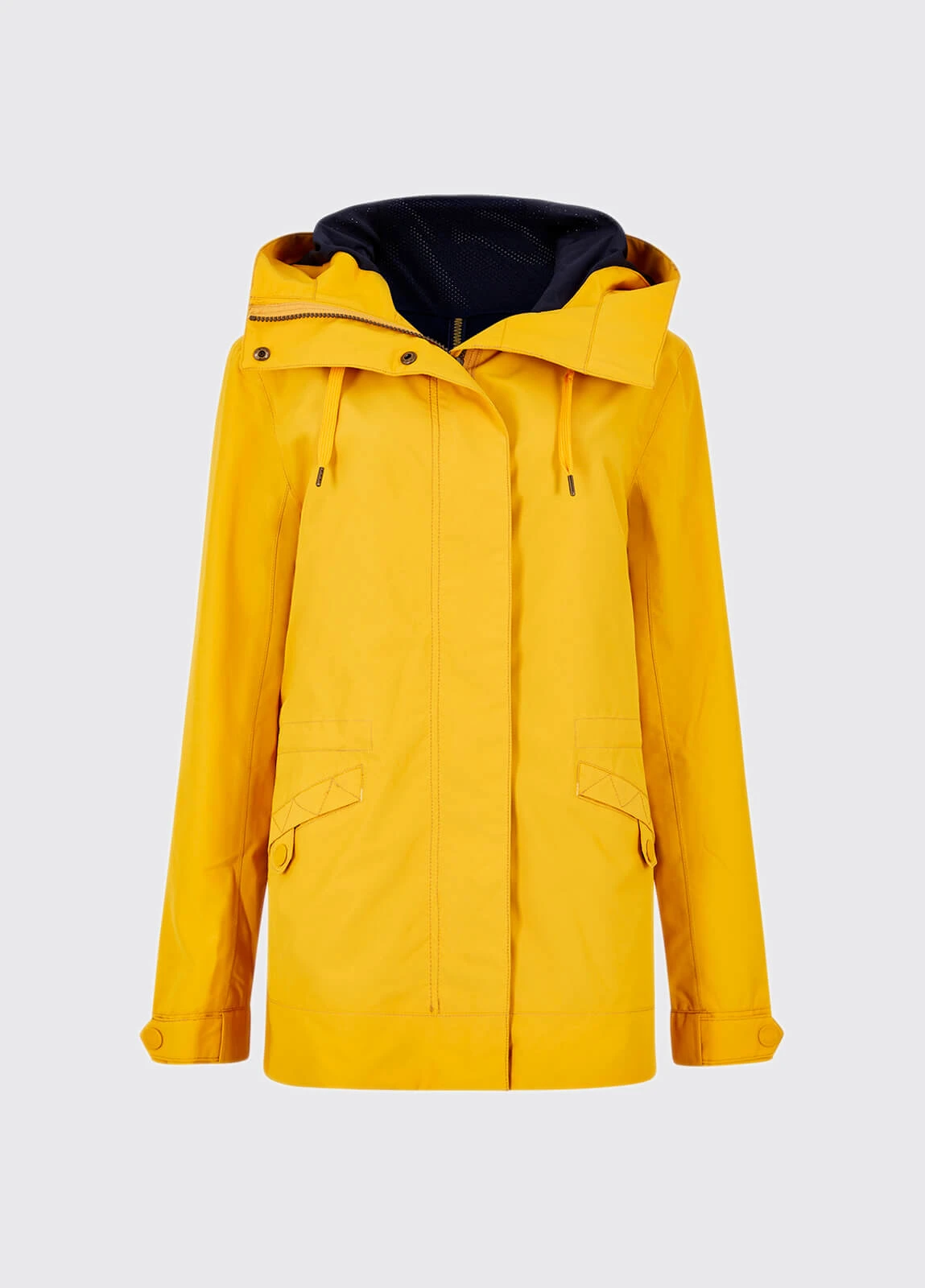 A striking lightweight jacket cut for style and practicality. The Shannon is constructed with waterproof, breathable materials and packed with design details. Perfect for long coastal walks, the taped seams and an integrated hood keep the damp at bay, while a velcro back opening allows extra ventilation. Fleece lined pockets mean warm hands on windy days, while your valuables are safely zipped in a secure interior pocket. The dropped hem at the back and drawstring waist, worn with individual style, make for a versatile and iconic wardrobe piece. – Water proof and breathable jacket with intergrated hood.