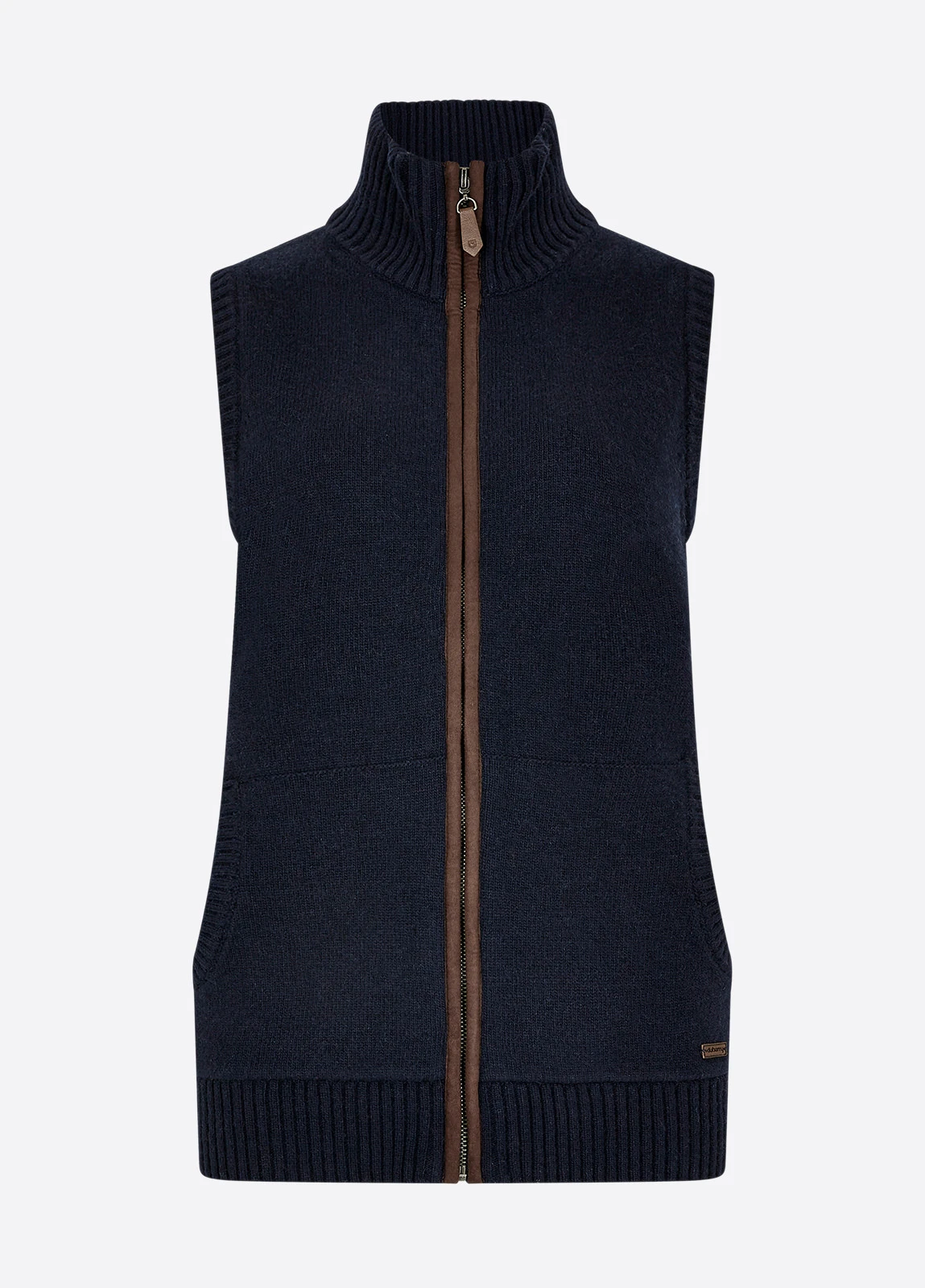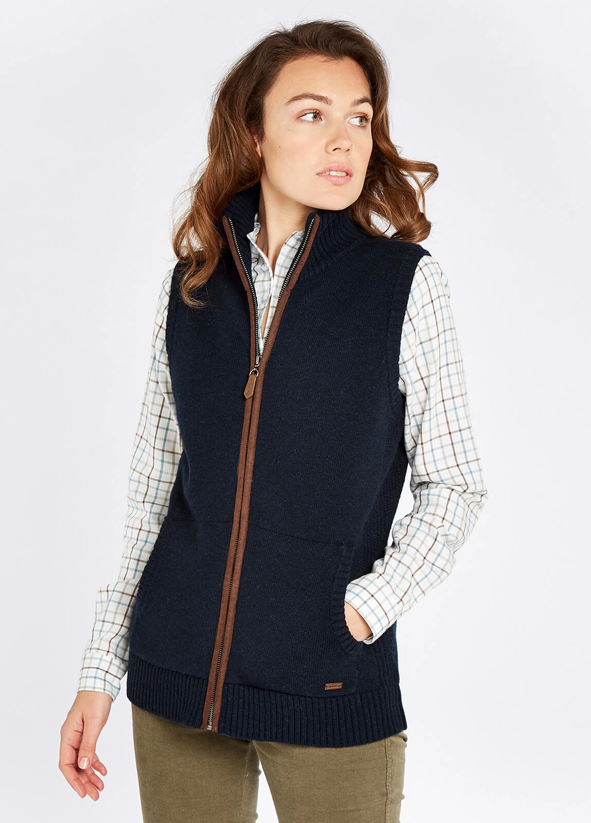 The Sheedy full zip sweater gilet is your seasonal secret weapon. Made from a wool blend that is breathable, warm and soft to the touch, and with ribbed sides for a close fit, slip it under your jacket to stay extra warm. With a smart suede trimmed zipper and a range of great colours, it also works perfectly over a Dubarry shirt on those early Autumn and Spring days.