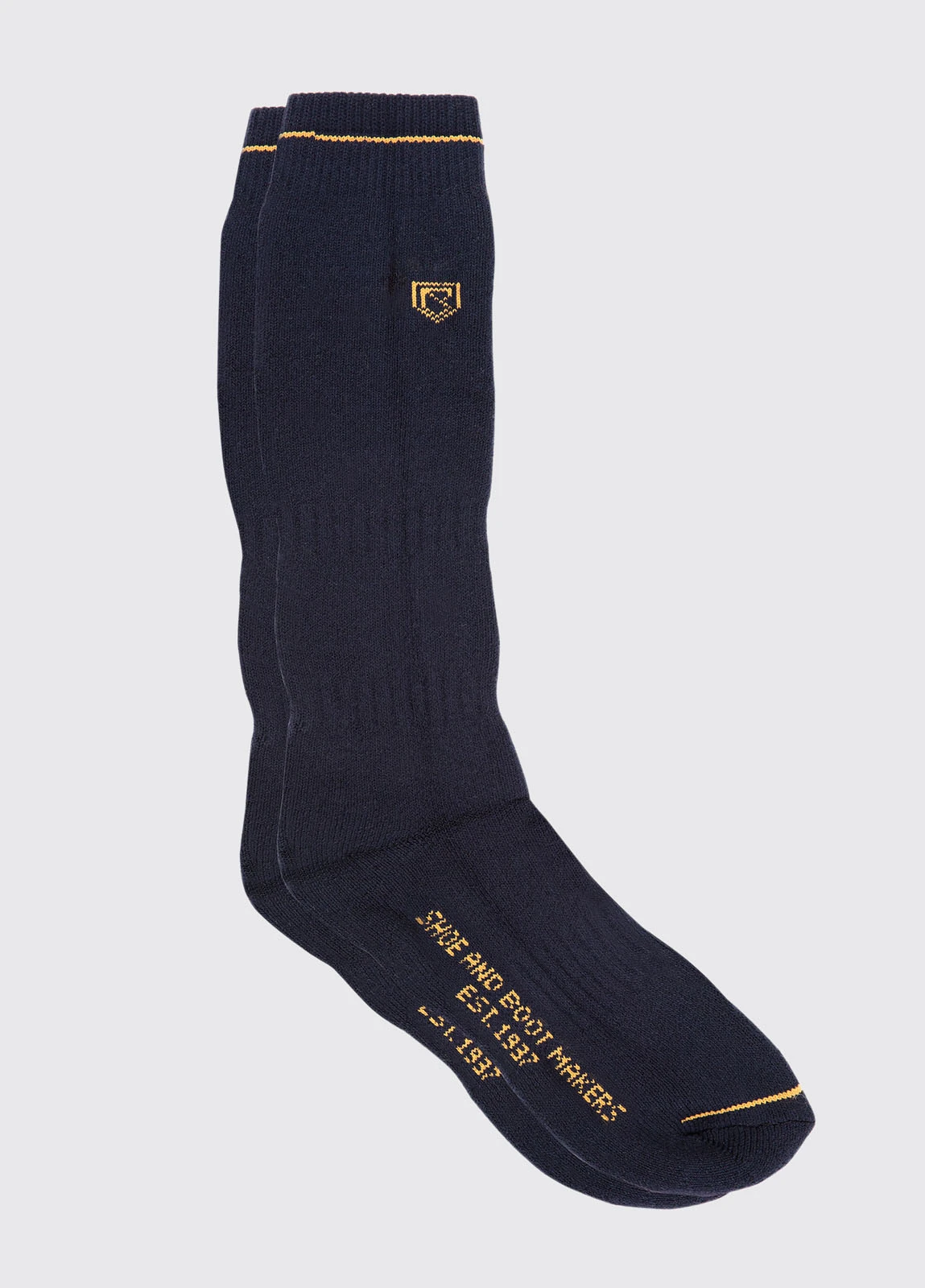 Dubarry boot socks, technical socks using Coolmax construction. Short technical sock with soft Terry loops surrounding heel and sole and reinforced Achilles area for maximum comfort, durability and performance. Coolmax construction Machine washable, wool cycle at 30°.