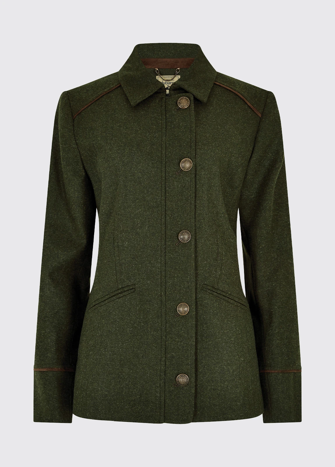 This is a military-inspired take on our best selling Bracken jacket. The spread collar allows for a more formal silhouette that is perfect for both the country and urban fashion scenes. Pair with plus fours for an elegant shooting look, or with dark jeans and a heeled ankle boot for an effortlessly stylish girl-about-town aesthetic.
