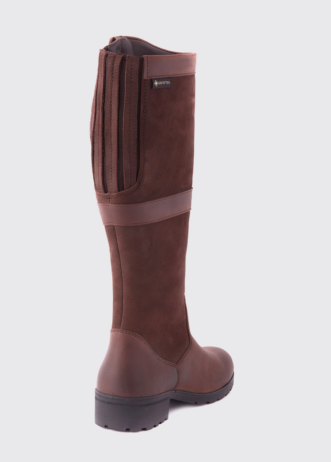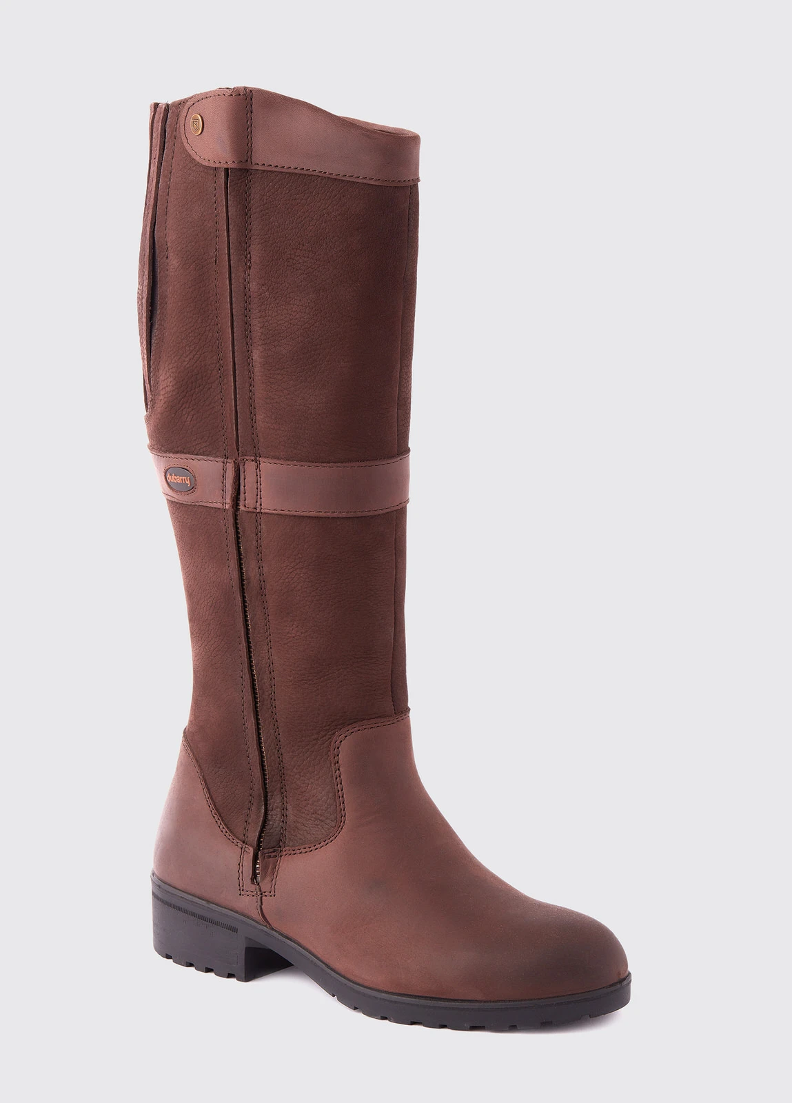 The Sligo, knee-high boot for women is packed with all the technical features you’d expect from a Dubarry country boot. GORE-TEX lining and Dubarry’s signature DryFast-DrySoft™ leathers, plus a securely bonded sole all creates a waterproof, shock-absorbing, comfortable boot. On top of this a full length zip helps foot entry and a leather covered elasticated calf panel streamlines the calf giving an elegant silhouette. Built to withstand the rough and tumble of country life, the Sligo style and fit looks great in a more urban setting too.