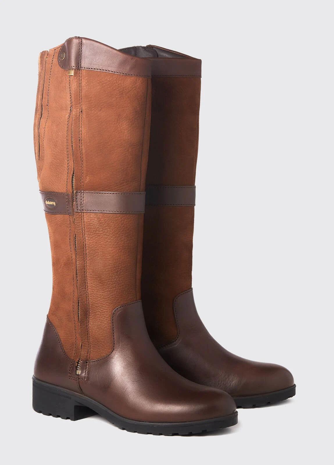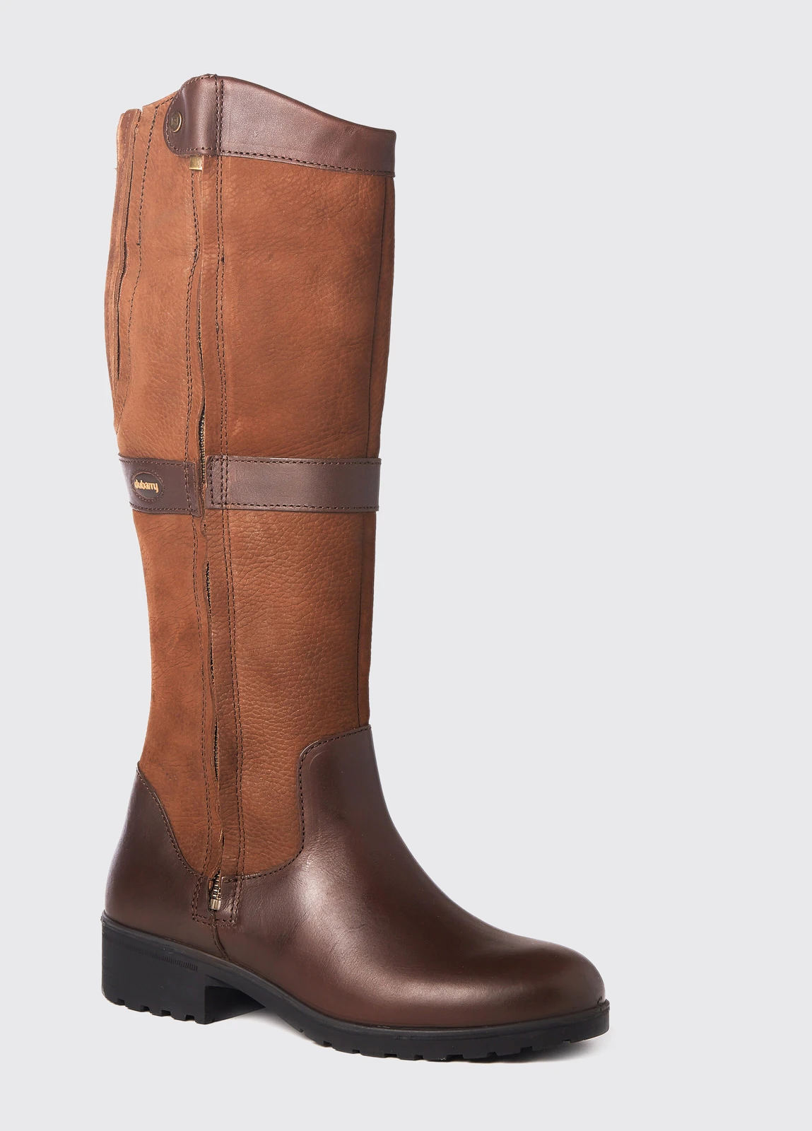 The Sligo, knee-high boot for women is packed with all the technical features you’d expect from a Dubarry country boot. GORE-TEX lining and Dubarry’s signature DryFast-DrySoft™ leathers, plus a securely bonded sole all creates a waterproof, shock-absorbing, comfortable boot. On top of this a full length zip helps foot entry and a leather covered elasticated calf panel streamlines the calf giving an elegant silhouette. Built to withstand the rough and tumble of country life, the Sligo style and fit looks great in a more urban setting too.