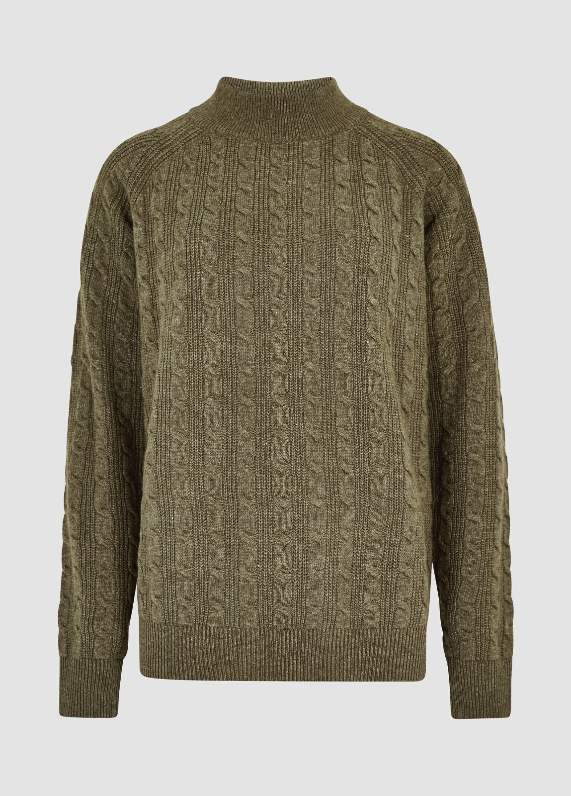 Brighten up a dreary winter day in a Tallanstown sweater. The comfortably loose fitting cable knit comes in subtly spring like colours while the wool, nylon and rayon blend fabric keeps you toasty throughout the chillier seasons.