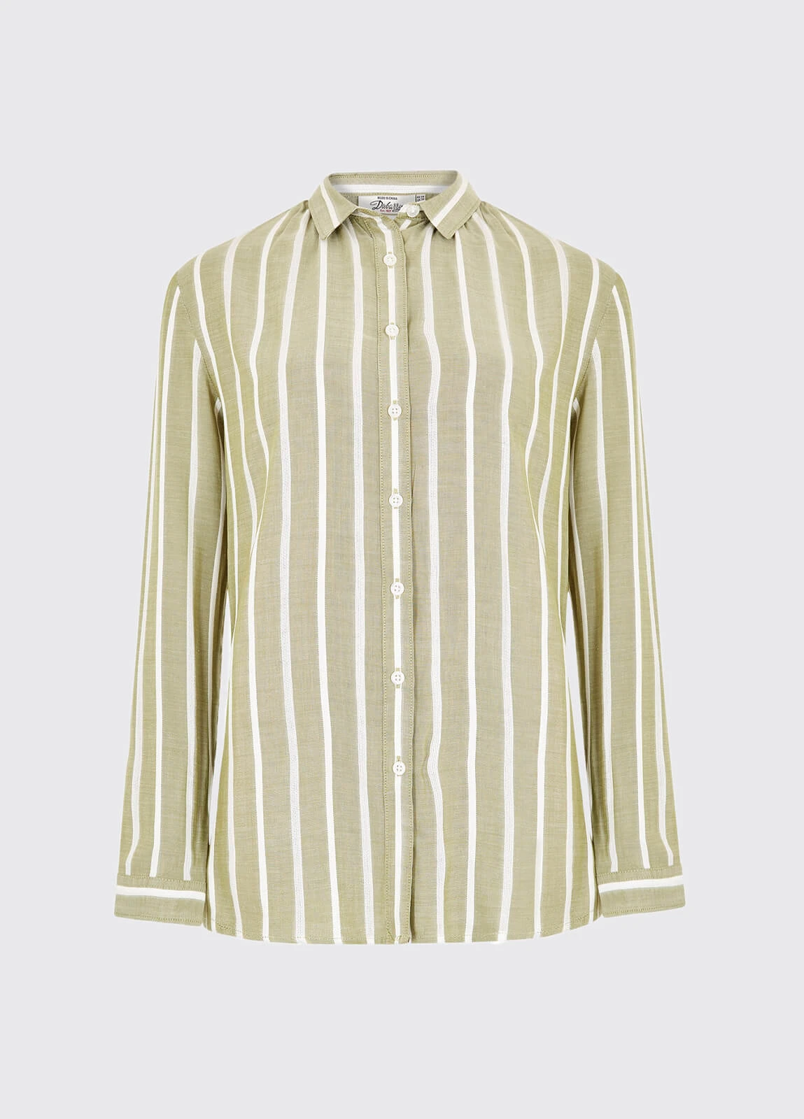 A lightweight striped shirt, ideal marine or yacht clothing teamed with a pair of Dubarry Bellinter shorts. Its slightly sheer fabric makes is perfect for summer layering or a beach cover up, while the pearl buttons, back pleat and dainty collar give a touch of elegance.